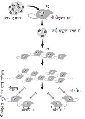 इस प्रक्रिया में वैज्ञानिक किसी मरीज़ से ट्यूमर निकाल कर उसे टुकड़ों में काट सकते हैं और प्रत्येक टुकड़े को कई भिन्न-भिन्न चूहों में डाल सकते हैं। प्रत्येक टुकड़ा एक-एक नया ट्यूमर बनता है और फिर उसे विभाजित करके अनेक चूहों में डाला जा सकता है। इस प्रक्रिया द्वारा, दर्जनों मानवीकृत चूहे बनाए जाते हैं, जिनका ट्यूमर मूल मानव रोगी के ट्यूमर के लगभग समान होता है। वैज्ञानिक ऐसे PDX चूहों के विभिन्न समूहों का वैकल्पिक दवाओं, दवा के विभिन्न संयोजनों और अनुक्रमों के साथ इलाज कर सकते हैं। इससे उन्हें यह निर्धारित करने में मदद मिलती है कि किसी विशेष ट्यूमर को खत्म करने के लिए कौन सी दवा या उसका संयोजन सबसे अच्छा काम करता है।