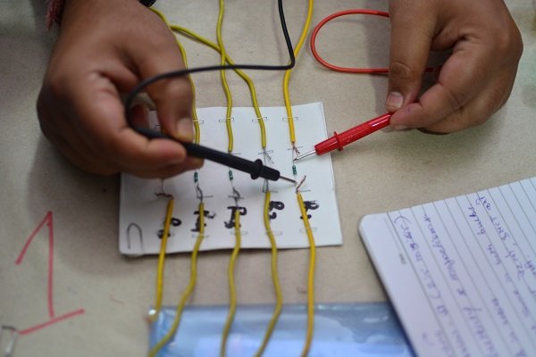 We have to measure the voltage, so let us adjust the multimeter first!
